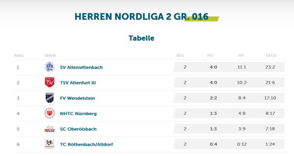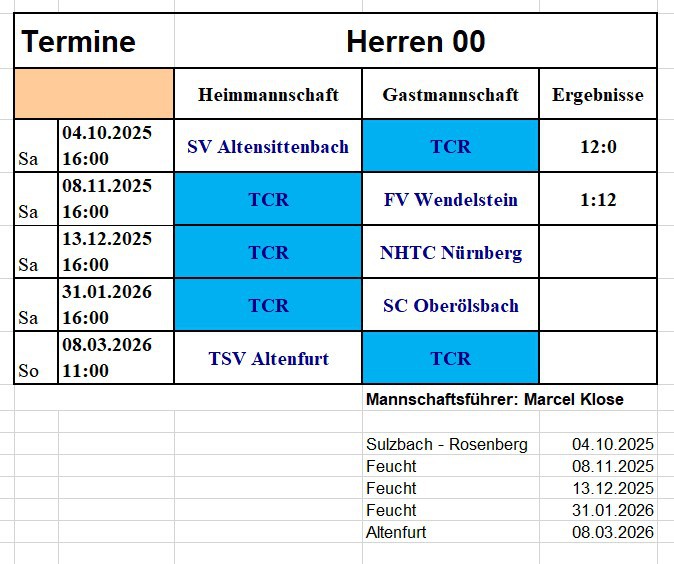 (Tabelle, Spielergebnisse) der Mannschaft