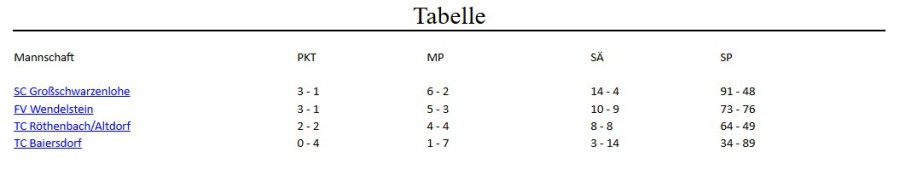 (Tabelle, Spielergebnisse) der Mannschaft