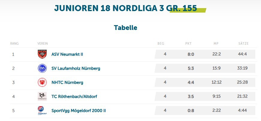 (Tabelle, Spielergebnisse) der Mannschaft